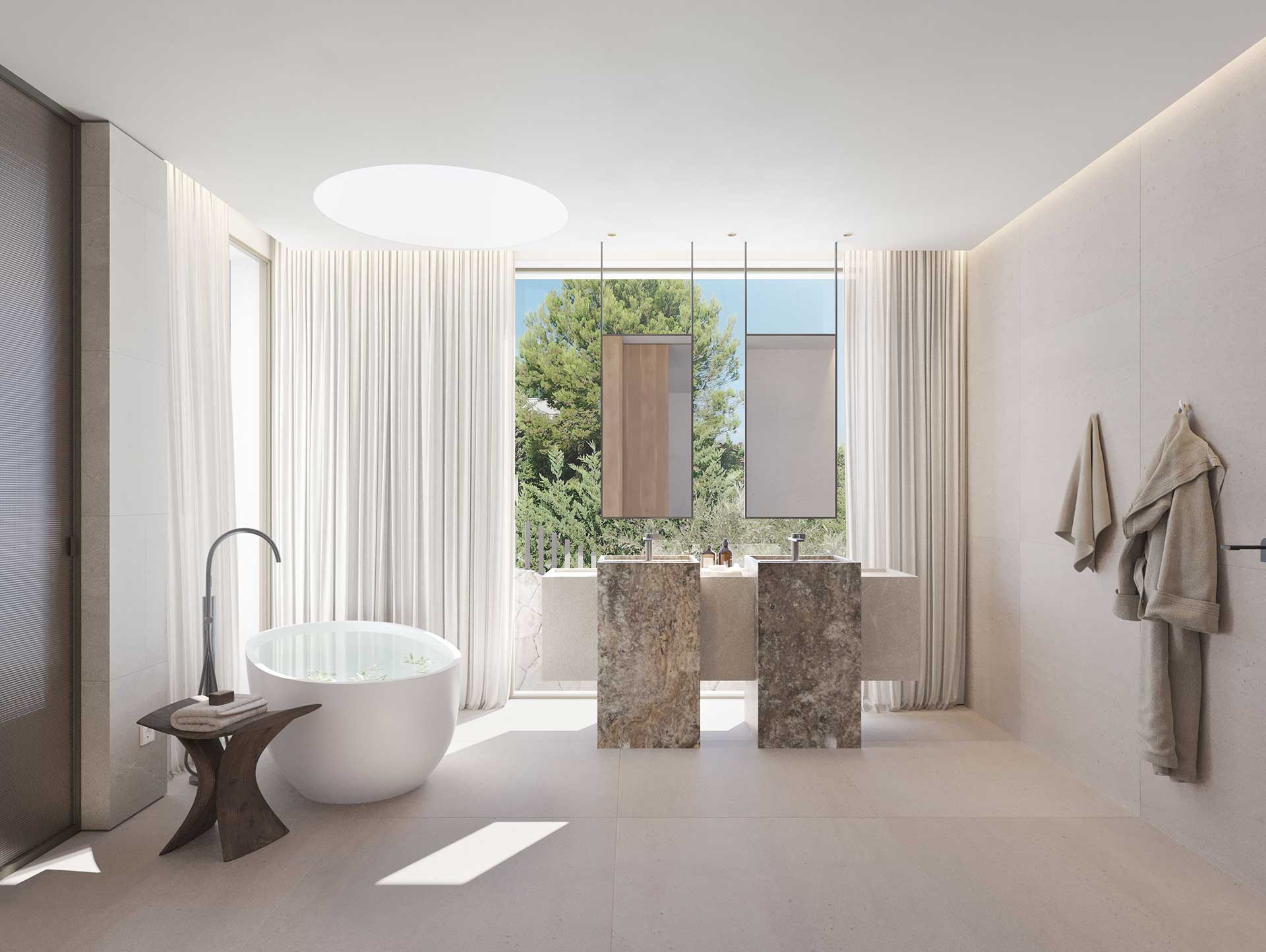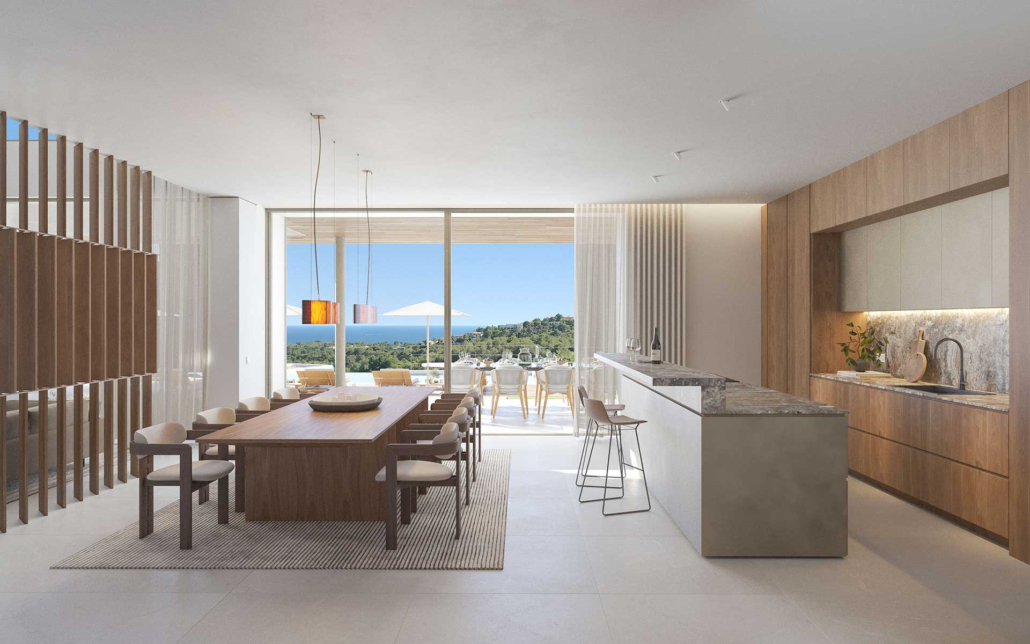 auch harmonisch und ästhetisch perfekt in das Gesamtkonzept integriert. Jeder Raum der Villa strahlt eine zeitlose Eleganz aus, die durch das Können lokaler Handwerker in Kombination mit deutscher Präzision zur Perfektion gebracht wurde. Die Villa Sa Maga steht nicht nur für Luxus und Nachhaltigkeit, sondern ist auch ein herausragendes Beispiel für handwerkliche Meisterleistung und raffinierte Innenarchitektur.